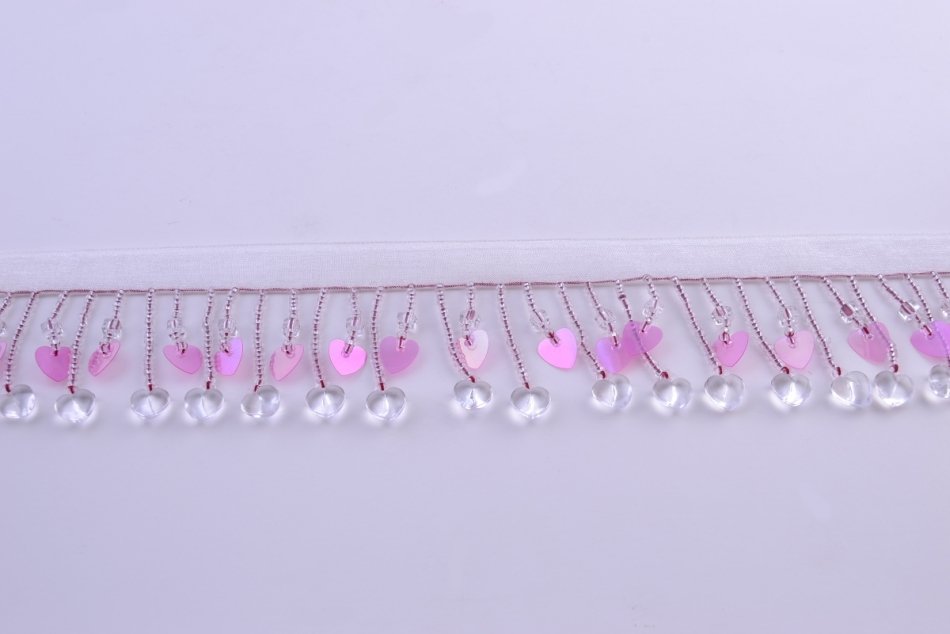 Frange perles $ - A0 1296 - Coeurs roses