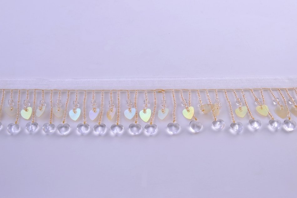 Frange perles $ - A0 1296 - Coeurs jaunes