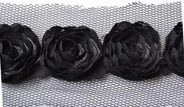 Galon fleur noire tulle