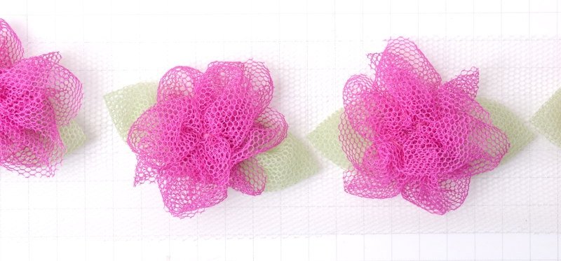 Galon floral bicolore sur tulle - A01333.X - A Vert, fushia