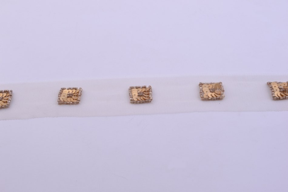 Galon tulle brodé perles